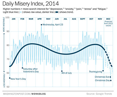 And the unhappiest day of the year in 2014 was April 23. WTF? I could understand April 15. But what’s the deal with the 23rd? Anybody got a theory? Am I missing something here?